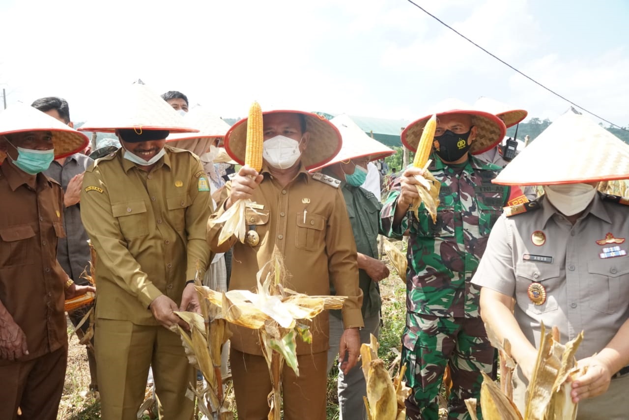Aceh Besar, Media Nanggroe.com – Bupati Aceh Besar Ir Mawardi Ali melakukan panen bersama jagung Pioneer seluas 40 Ha program pemamfaatan lahan GTRA (Gugus Tugas Reforma Agraria) di Lambada, Kemukiman Lamteuba, Kec. Seulimum, 1 Maret 2021.
