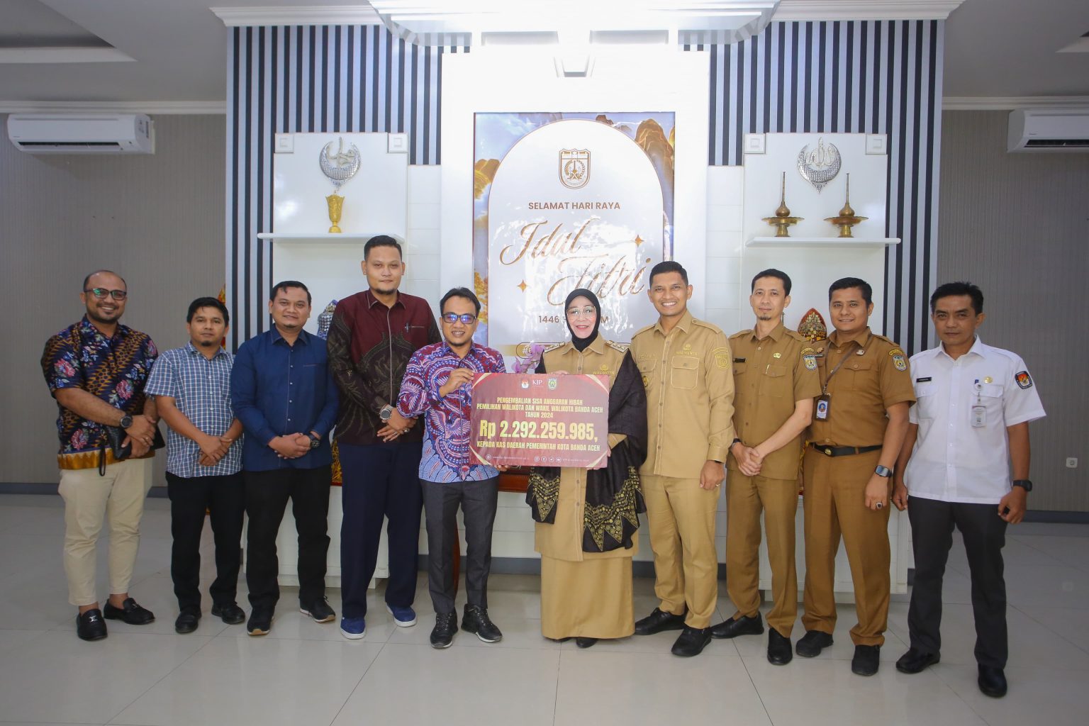 Dana senilai Rp 2,2 miliar tersebut diserahkan secara simbolis oleh Ketua KIP Banda Aceh Yusri Razali kepada Wali Kota Banda Aceh Illiza Sa’aduddin Djamal di pendopo, Senin (21/4/2025).