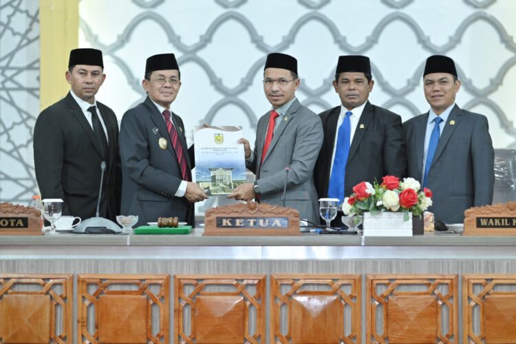 MediaNanggroe.com, Banda Aceh – Dewan Perwakilan Rakyat Kota (DPRK) Banda Aceh menggelar sidang paripurna terkait penyampaian penjelasan dan penyerahan secara resmi RKUA-PPAS APBK Banda Aceh tahun anggaran 2024. Sekaligus penyampaian laporan hasil reses II masa persidangan III tahun 2023 dan penyampaian rencana kerja DPRK Banda Aceh tahun 2024, Senin (14/8/2023).