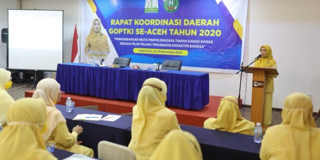 Hal tersebut disampaikan oleh Ketua DPD GOPTKI Aceh, Safrida Yuliani, saat membuka Rapat Koordinasi Daerah GOPTKI Se-Aceh Tahun 2020, di Hotel Oasis Banda Aceh, Senin, 23/11/2020.