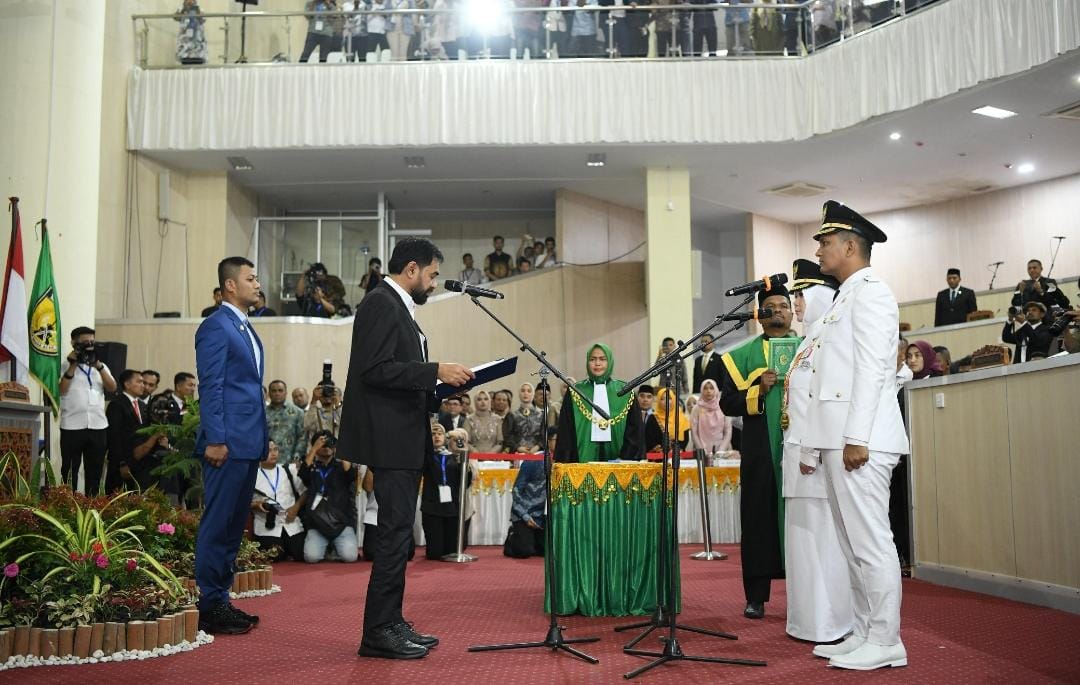 MediaNanggroe.com, Banda Aceh — Gubernur Aceh, Muzakir Manaf, mengambil sumpah dan melantik Illiza Sa’aduddin Djamal sebagai Wali Kota dan Afdhal Khalilullah sebagai Wakil Wali Kota Banda Aceh periode 2025-2030, dalam rapat paripurna DPRK Banda Aceh, pada Rabu, (12/2/2025) sore.