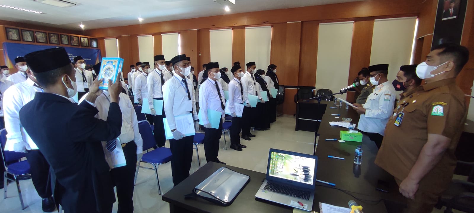 Usai melakukan Pembacaan sumpah dan Pakta Integrita, Kasatpol PP dan WH Aceh Jalalulldin,SH.,MM membacakan Sabutan Guberbur Aceh.
