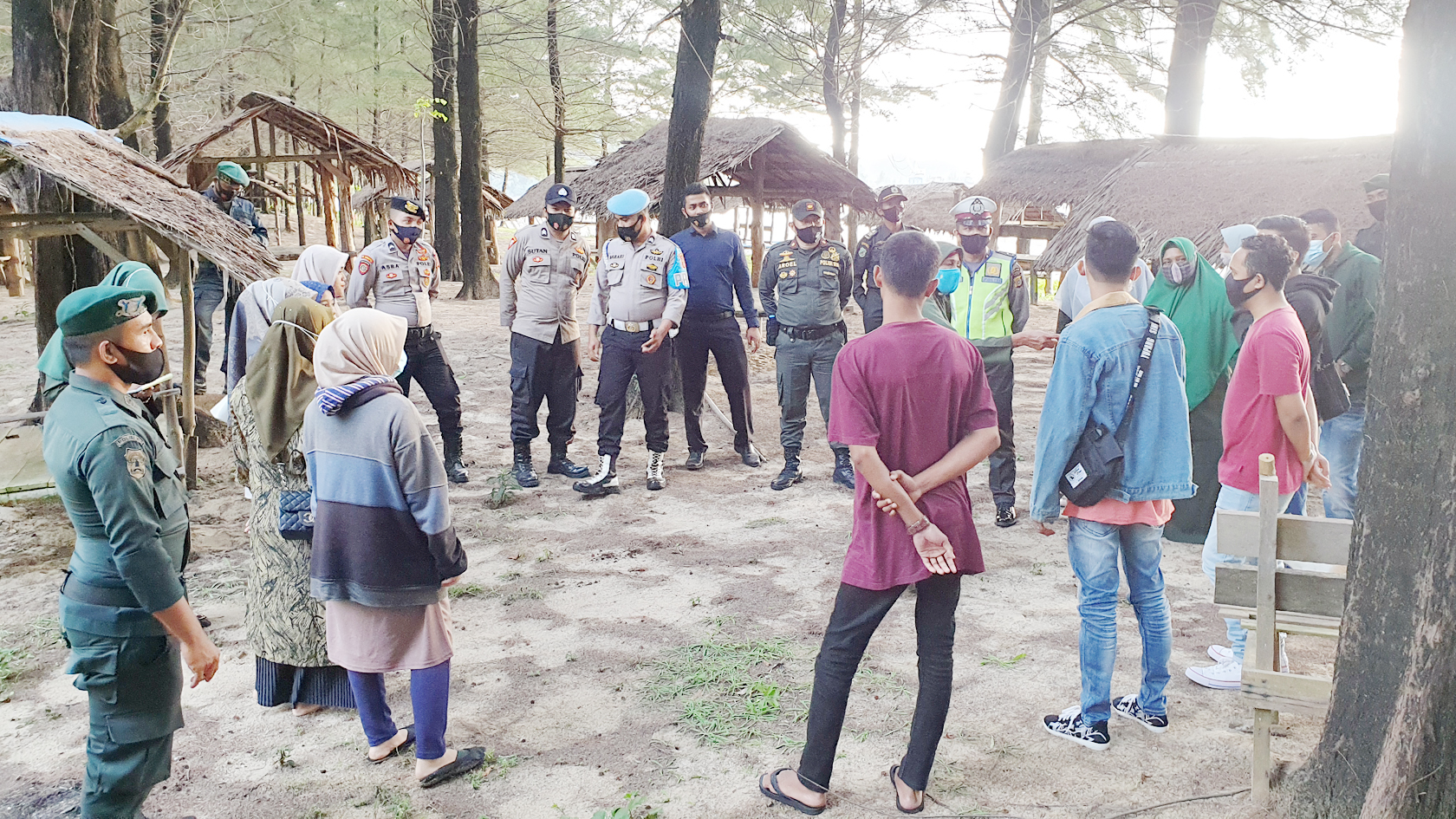 Selain itu, saat patroli tersebut terlihat juga petugas melakukan sosialisasi protokol kesehatan kepada masyarakat yang berada di tempat wisata untuk untuk selalu menggunakan masker saat keluar rumah, menjaga jarak dan selalu mencuci tanggan, agar memutuskan mata rantai Covid 19.