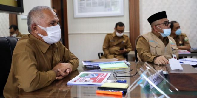 Banda Aceh MediaNanggroe.com – Jelang pelaksanaan Gerakan Masker Anak Sekolah atau disingkat Gemas, Sekretaris Daerah Aceh Taqwallah, memberikan arahan kepada seluruh Kepala Satuan Kerja Perangkat Aceh dan Kepala Dinas Pendidikan Kabupaten/Kota di seluruh Aceh, via konferensi video, di ruang rapat Sekda Aceh, Senin (23/11/2020).