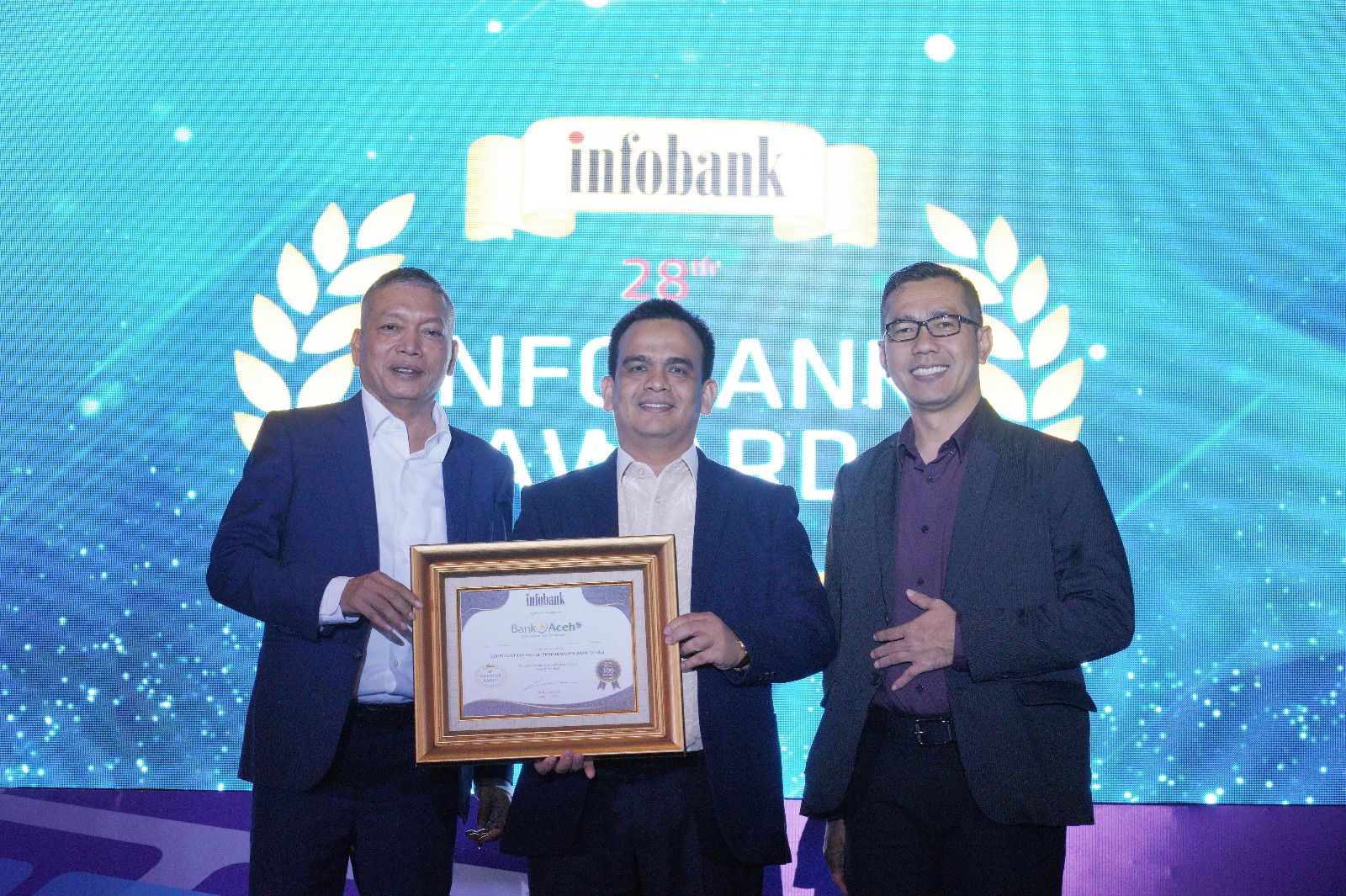 Penghargaan diterima oleh Direktur Utama Bank Aceh, Muhammad Syah dan diserahkan langsung oleh Chairman Infobank Media Group, Eko B. Supriyanto pada ajang “28th Infobank Award 2023” di The Ritz-Carlton, Mega Kuningan, Jakarta, Jumat, 25 Agustus 2023.