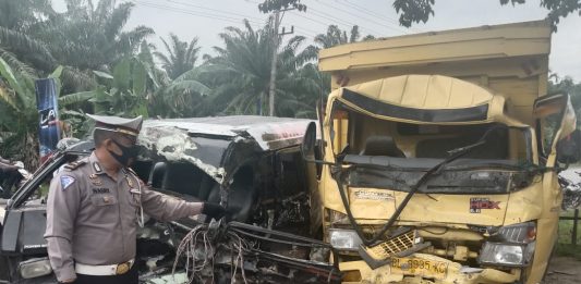 MediaNanggroe.com, Kuala Simpang – Mobil penumpang Mitsubishi L-300 kontra dengan truk Colt Diesel bermuatan ikan.